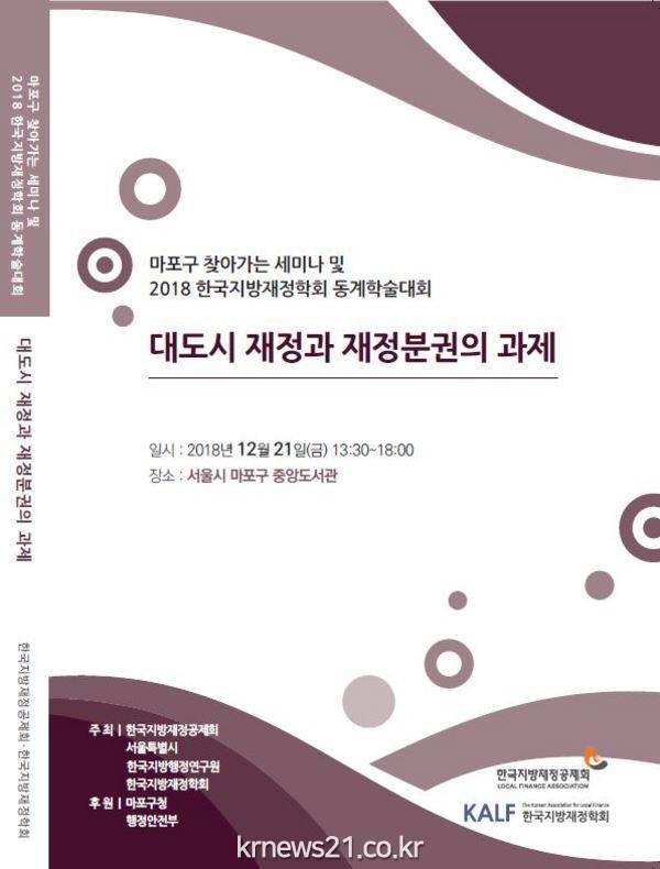 마포구(구청장 유동균)가 구의 재정 발전방향을 되짚고 건전한 재정운영 및 집행 방안을 모색하기 위하여 오는 21일 마포중앙도서관(성산로 128)에서 ‘찾아가는 지방재정세미나’를 개최한다고 밝혔다.
