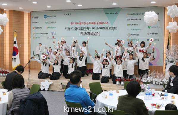 ‘다자녀가정-기업(단체) WIN-WIN 프로젝트’는 지역사회가 자발적으로 힘을 모아 다자녀가정의 육아부담을 나누고자 지난 2010년 시작한 상생사업이다. 강동구가 네 자녀 이상 가정과 기업(단체)을 연결해주면 기업이 결연가정에 매월 10만 원 양육비를 지원한다.