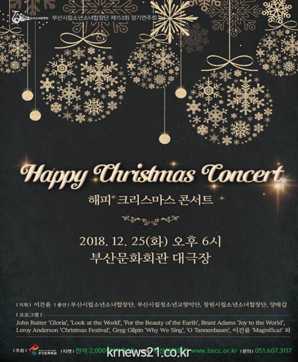 부산시립소년소녀합창단 제153회 정기연주회 ‘Happy Christmas Concert’는 만5세 이상입장 가능하며 전석 2,000원(자유석)이다.