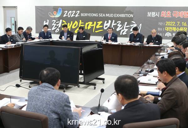 ▲ 2022보령해양머드박람회 연계사업 발굴 보고회 장면보령시는 27일 오전 시청 중회의실에서 김동일 시장과 각 부서장 등 관계자 30여 명이 참석한 가운데 2022보령해양머드박람회와 연계할 사업 발굴을 위한 보고회를 개최했다.