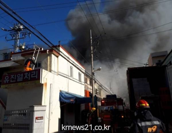 ▲ (사진=부산소방안전본부)오늘 28일 낮 12시 59분께 부산 사상구 한 냄비 제조 공장에서 불이 났다.