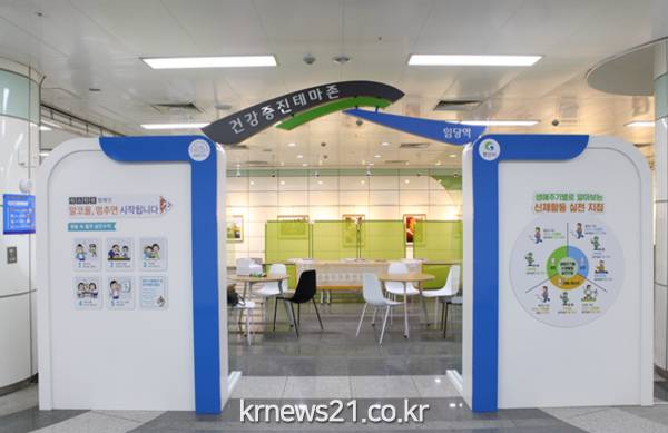 건강증진테마존에는 혈압계, 체중․신장계 등이 설치된 건강관리코너를 개설하고 고객쉼터를 카페 분위기로 바꾸어 고급화하였다. 또한 정평역에는 정신건강증진, 임당역은 심뇌혈관 질환예방, 영남대역은 금연·절주실천 등에 관한 건강정보를 벽면에 래핑하여 시민들의 관심을 끌었다.