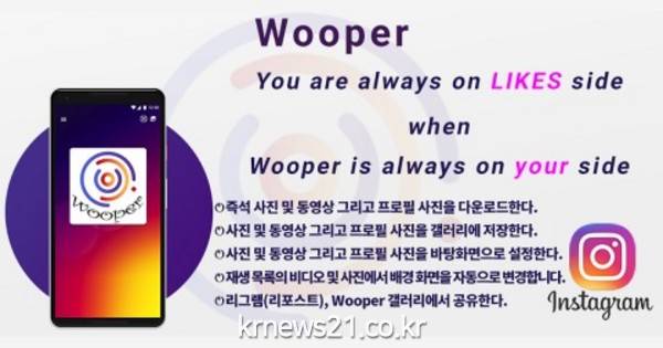 Wooper가 새로운 안드로이드 앱인 ‘Wooper for Instagram 다운로드&라이브 배경화면’을 출시했다고 2일 밝혔다.