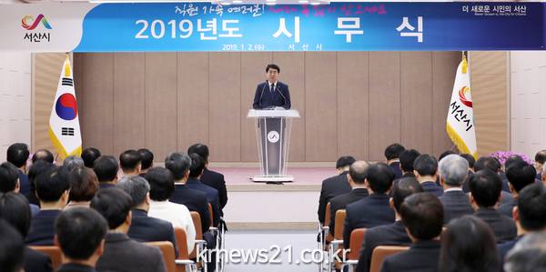 서산시가 2일 시청 대회의실에서‘2019년 시무식’을 열고 기해년(己亥年) 새해의 힘찬 발걸음을 내딛었다.