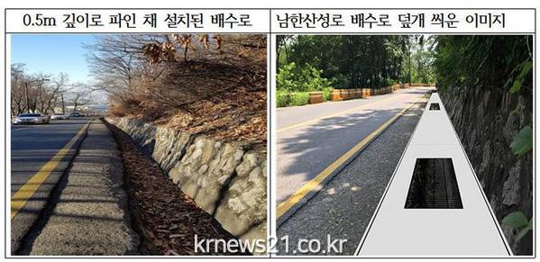 구는 도로와 석축 사이에 0.5m 깊이로 파인 채 설치된 배수로(총 3.4㎞)에 덮개를 씌운다.