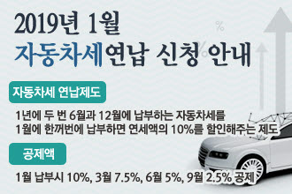 자동차세 연납제도는 자동차 소유자가 1년에 두 번 6월과 12월에 납부하는 자동차세를 1월에 한꺼번에 납부하면 연간 납부세액의 10%를 할인해주는 제도이다.