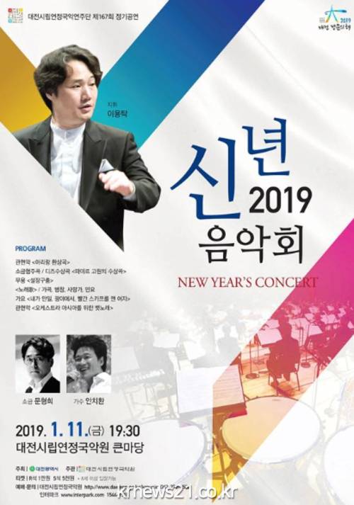 ‘2019! 신년음악회’는 국악연주단 예술감독 겸 지휘자 ‘이용탁’의 지휘로 다양한 장르의 작품을 관객들에게 선보이며, 소금 연주자 ‘문형희’, 호소력 짙은 목소리로 관객의 사랑을 받는 싱어송라이터 ‘안치환’의 협연도 함께 펼쳐진다.