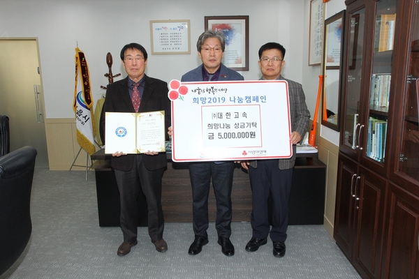 유진섭 시장은“(주)대한고속 김재두 대표이사님을 비롯 임직원 여러분의 소중한 뜻에 정말 감사드린다.”며 “기탁금은 어려운 여건 속에서도 열심히 학업을 수행하는 학생들과 어려운 경제형편으로 생활이 곤란한 분들을 위해서 소중하게 쓰겠다.”고 밝혔다.
