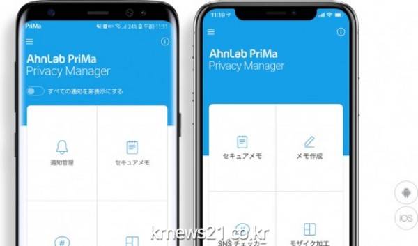 안랩(대표 권치중)은 안드로이드 및 iOS 기반 단말기(스마트폰 및 패드)에서 사용자 개인정보보호를 위한 다양한 기능을 제공하는 개인정보 관리 솔루션 ’AhnLab PriMa(Privacy Manager, 이하 안랩 프리마)’를 일본에서 출시했다고 8일 밝혔다.