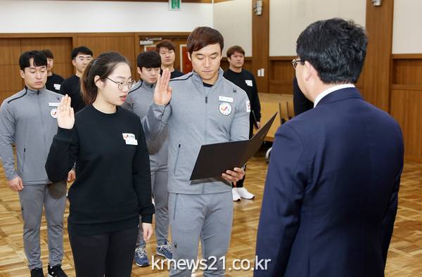 시는 지난 8일 시청 중회의실에서 사격팀(감독 박신영)과 카누팀(감독 박민호)지도자, 선수 등 총 20명이 입단식을 갖고 국내외 각종대회 필승의지를 다짐했다고 9일 밝혔다.