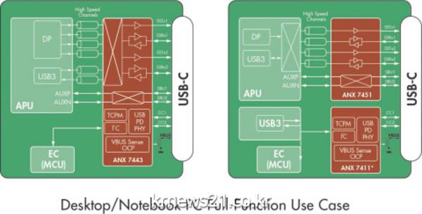 ANX74xx 제품군은 인텔(Intel), AMD, 엔비디아(Nvidia)의 CPU/GPU 플랫폼에 적용되며 이미 검증을 마친 아키텍처를 기반으로 설계했다. ANX74xx 제품군은 전력 소모를 크게 낮추고, 클럭 소스를 통합했으며, 디스플레이포트 1.4a와 USB 3.2의 견고성을 개선했다.