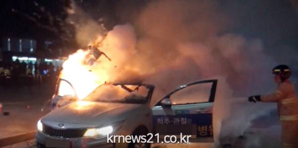 경찰 관계자는 “택시 안에서 녹아서 납작해진 기름통과 기름통 뚜껑이 발견됐다”며 “1차 유증 반응검사에서 양성 반응이 나왔다. 분신으로 추정하고 조사중”이라고 말했다.