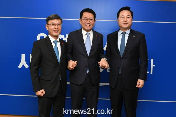 ▲ (사진=김두관의원실)김두관 국회의원(더불어민주당, 김포시 갑)은 11일 “인천지하철2호선~김포~GTX킨텍스역 연장을 위해 박남춘 인천시장에게 협의를 요청했고, 정하영 김포시장과 함께 만나 제4차국가철도망 계획 반영을 위해 김포와 인천이 공동추진하기로 합의했다”밝혔다.