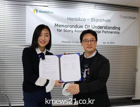 스토리 거래 플랫폼 ‘스토리체인(Storichain)’이 한국 암호화폐 거래소인 ‘한빗코(Hanbitco)’와 10일 MOU를 체결했다고 밝혔다.