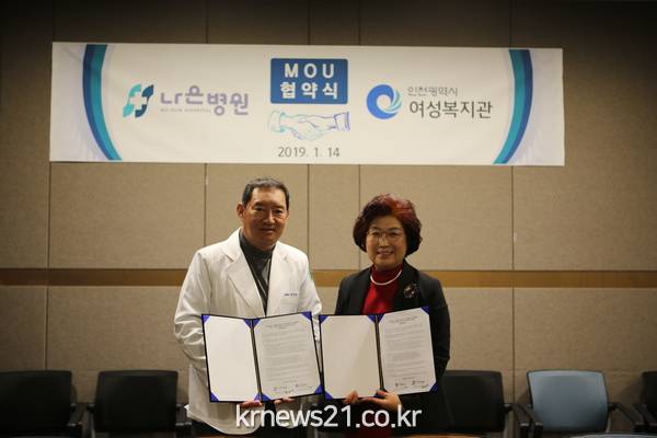 ▲ (사진=인천광역시청)인천여성복지관(관장 김태미)과 루가의료재단 나은병원(병원장 하헌영)은 지난 14일 여성사회참여 활성화와 복지증진을 위해 업무협약(MOU)을 체결했다고 밝혔다.