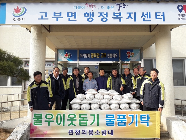 (전북/뉴스21)김문기기자=정읍시고부면 관청의용소방대(대장 김윤석)는 지난 14일 고부면행정복지센터(면장 박환성)를 방문하여 100만원 상당의 쌀 45포(10kg)를 기탁했다.