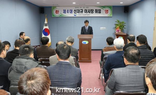 신재규 이사장은 지난 16일 김동일 시장으로부터 임명장을 받고, 이후 공단 본부에서 60여 명의 직원들이 참석한 가운데 취임식을 갖고 본격 업무를 시작했다.
