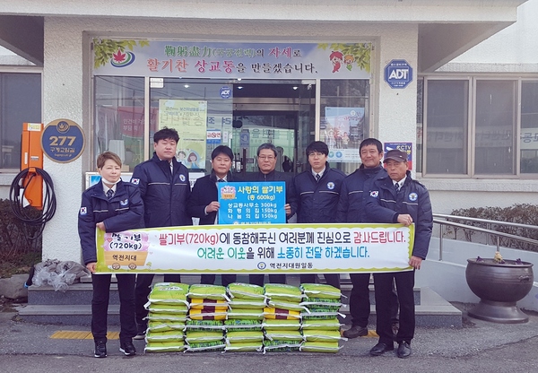 정읍역전자율방범대(대장 김영수)는 지난 23일 설 명절을 맞아 어려운 이웃에게 전달해 달라며 상교동주민센터(동장 기호종)에 쌀 300kg, 화평의 집에 150kg, 나눔의 집에 150kg 등 총 600kg(60포/10kg)의 쌀을 기탁했다.