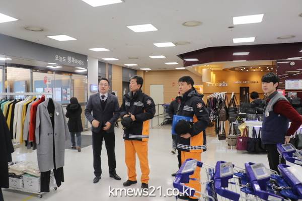 배명호 김포소방서장은 소방·방화시설 정상 작동여부 및 화재발생 위험요인은 없는지 꼼꼼히 살펴보고 관계자들의 애로사항을 들었다. 이 자리에서 배명호 서장은“최근 잇따른 대형화재로 많은 국민들이 불안해하고 있다”며 “특히 설 연휴 기간 동안 유동인구가 많을 것으로 예상되는 대형판매시설 특성상 화재가 발생하면 다수의 인명과 많은 재산피해가 예상되는 만큼 소방시설 유지·관리에 만전을 기해 달라.”고 당부했다.