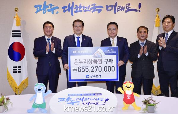 광주은행은 올해 설 명절을 앞두고 전통시장 및 지역경제 활성화를 위한 광주시 시책에 적극 동참하는 의미에서 전 직원이 참여해 6억5500만원 상당의 온누리상품권을 구매했다.