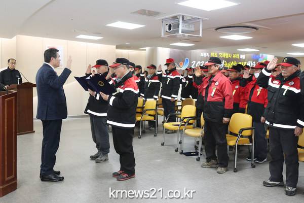 ▲ 산불전문진화대 및 산불감시진화대 발대식 장면보령시는 1일 오전 시청 대회의실에서 산불전문진화대 및 산불감시진화대 발대식을 갖고, 본격적인 봄철 산불비상 근무체제에 돌입했다.