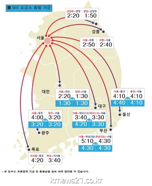 도로공사는 이날 전국 교통량은 평소 토요일 수준인 418만대 일 것으로 전망했다. 귀성길 정체는 정오께 절정을 이룬 뒤 오후 10시께부터 해소될 것으로 보인다.