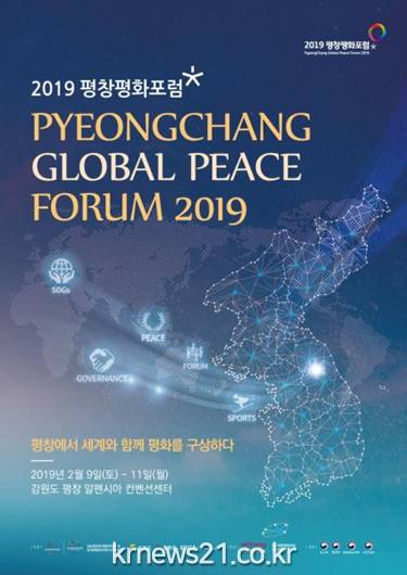 강원도와 평창군은 “스포츠를 통한 평화의 구현을 실천한 평창올림픽 유산을 이어가기 위해 노벨평화상 수상자와 전세계 평화운동 단체, 시민들이 한데 모여 ‘평창에서 시작하는 세계평화’라는 주제로 2019 평창평화포럼이 9일부터 11일까지 평창 알펜시아 컨벤션센터에서 진행된다”고 밝혔다.