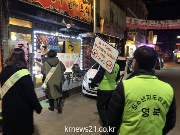 포천시 영북면(면장 이용승)과 청소년지도위원회(위원장 박치우)는 지난 12일 저녁 7시 30분부터 운천 시가지에서 청소년의 건강하고 안전한 생활환경 조성을 위한 유해환경 지도단속 및 청소년 보호 캠페인을 전개했다.