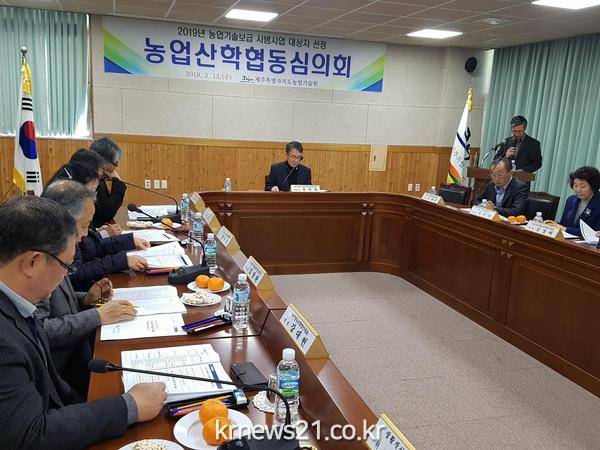 제주특별자치도농업기술원(원장 송승운)은 2월 13일 소회의실에서 농업산학협동심의회를 개최해 ‘2019 농업기술보급 46개 시범사업 대상자를 확정’했다고 밝혔다.