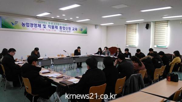 ▲ 농가경영체 및 직불제 통합신청 교육 장면보령시(시장 김동일)는 농업인들의 편의를 위해 농업경영체 등록 및 직불금 신청을 농지소재지 읍면동사무소 또는 농산품품질관리원에 한번 방문으로 처리할 수 있도록 오는 19일부터 3월 26일까지 공동 접수한다.