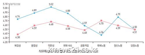 -비정규직은 정규직보다 육체노동의 강도가 높다고 인식하는 편이었다(정규직 4.36점, 비정규직 4.70점).