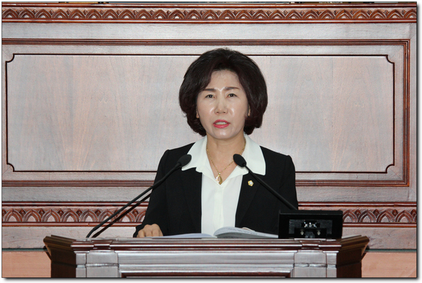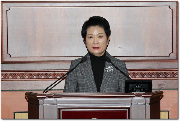 황혜숙 의원은‘교통약자 이동편익을 위한 시내버스 거점제 제안’이라는 5분 자유발언을 통해 시내버스가 읍면 소재지까지만 운행하고, 소재지부터 마을까지는 농촌복지 공공형택시를 운행하는 시내버스 거점제가 시행된다면 장애인, 노약자 등 교통약자에게 안전하고 편리한 교통환경을 제공할 수 있다며 집행부의 긍정적이고 적극적인 검토를 당부하였다.