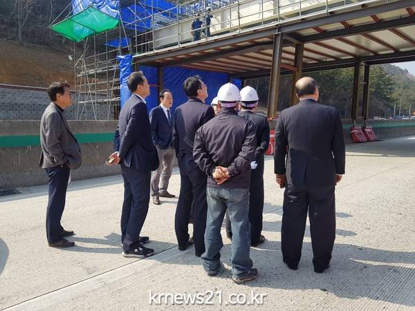 시의회 해양도시건설위원회(위원장 주종섭)는 지난 20일 오후 여수·순천 자동차전용도로 여수상징문 조성공사 현장을 방문해 18일 새벽에 일어난 교통사고 경위에 대해 묻고 공사현장 관리의 부실을 따졌다.
