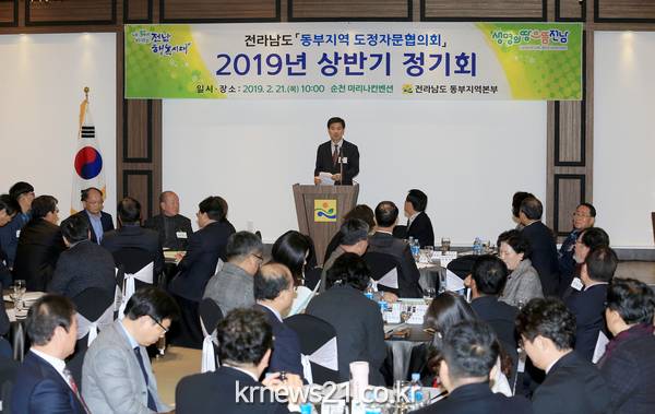 전라남도 동부지역본부는 민선7기 도정 운영 방침인 ‘현장 중심의 도민 제일주의’ 실현을 위해 21일 순천 마리나컨벤션에서 ‘전라남도 동부지역 도정자문협의회’를 열어 환경․산림 분야 업무 추진계획을 소개하고 도민 의견을 수렴했다.