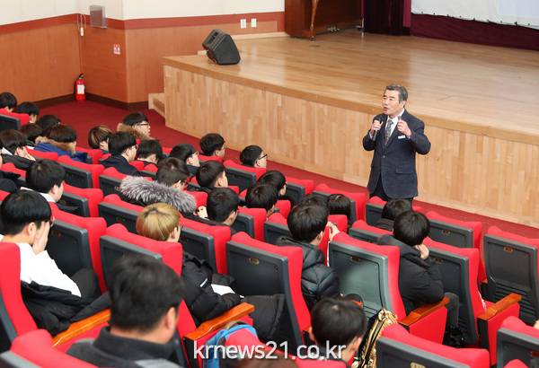 김동일 보령시장은 21일 오전 보령시청소년수련관에서 충남해양과학고등학교 신입생 80여 명을 대상으로 열린 특강에서 이같이 말하고, 보령의 새역사를 지역의 학생들과 함께 만들어 나가겠다고 말했다.