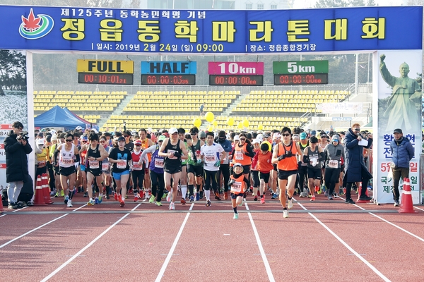 정읍시 체육회가 주최하고 정읍시육상연맹이 주관한 대회에는 풀·하프 코스, 10km, 5km에 선수 4천여 명이 참가했다.