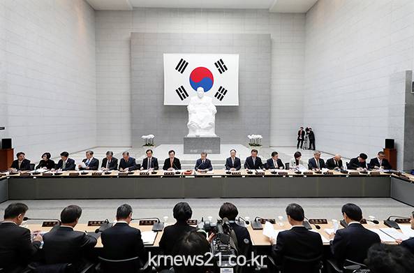 ▲ 26일 오전 서울 용산구 백범 기념관에서 열린 국무회의에서 문재인 대통령이 발언하고 있다. (사진=청와대) 문재인 대통령은 26일 “친일을 청산하고 독립운동을 제대로 예우하는 것이 민족정기를 바로 세우고 정의로운 나라로 나아가는 출발”이라고 말했다.
