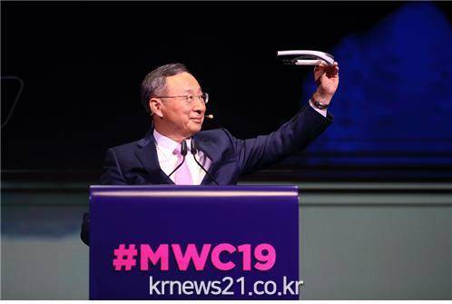 MWC 2019 기조연설에서 황창규 KT 회장은 ‘FITT360’을 착용, 5G 시대 콘텐츠 공유의 확장성에 대해 소개했다.