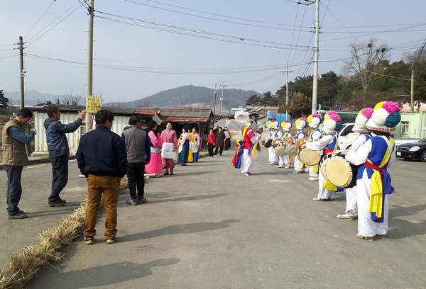 이어 마을 동쪽에 위치한 할아버지 당산과 할머니 당산, 아들당산에 새끼줄을 두른 후 풍년과 무사안녕을 바라는 제를 올렸다.