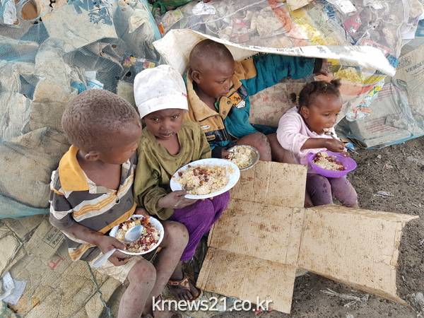 ▲ 케냐 나쿠루 쓰레기장에서 무료급식을 먹고 있는 아이들국제구호 NGO ‘함께하는 사랑밭’과 ‘굿티비’ 기독교방송이 장애와 빈곤으로 고통 받는 이웃들을 위해 공동 기획한 ‘러브미션’이 방송된다.