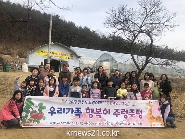 광주시(시장 신동헌)는 지난 9일 관내 드림 스타트 가족 30여 명을 대상으로 실내동물원 주렁주렁(하남시 소재)과 향아 딸기농원(광주시 남종면 소재)에서 가족체험학습 ‘우리 가족 행복이 주렁주렁’을 행사를 진행했다.
