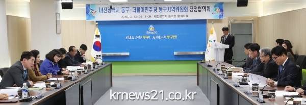 ▲ (사진=대전동구청제공)대전 동구는 13일 중회의실에서 시·구의원 등과 국·시비 확보 및 지역현안사업의 원활한 추진을 위해 당정협의회를 개최했다.