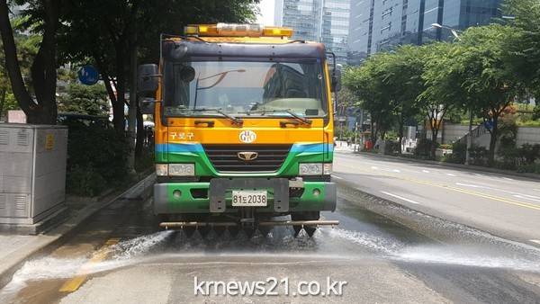 구로구는 살수차량, 노면차량 등을 동원해 물청소를 병행하며 무단투기 근절 캠페인도 펼친다.