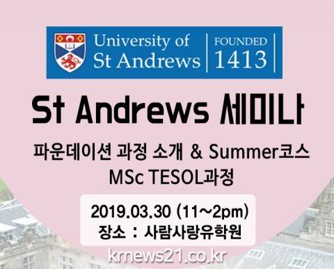 대학평가기관인 THE TIMES에서 TOP 포함될 만큼 세인트 앤드류스(St Andrews, 3위)는 영국에서 알아주는 명문대이다. 세인트 앤드류스 파운데이션은 소규모(6~12명)로 이뤄지며, 영국에서 학생 만족도가 가장 높은 학교 중 하나로 알려져 있다. 또한 국제 학생을 위한 학사/파운데이션, 프리 마스터 과정과 영어 과정 등이 개설되어 있다.