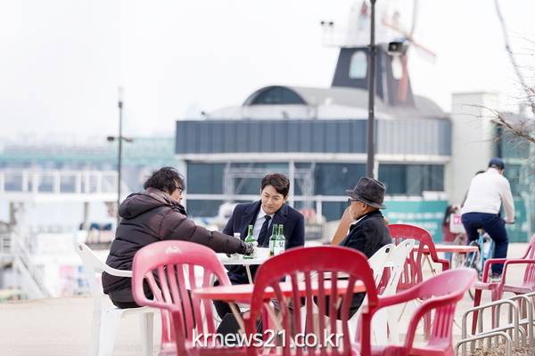 주진모, 송경철, 오광록의 ‘홈리스 3인방 낮술 회동’ 장면은 서울시 영등포구 한 편의점 앞에서 진행됐다. 특히 그동안 주로 깜깜한 밤, 서울역 부근 지하도와 길거리에서 촬영을 해왔던 세 사람이 오랜만에 날 밝은 오후에 만나 야외촬영을 하게 된 상태. 오랜만에 촬영을 위해 다시 모인 주진모와 송경철, 오광록은 서로의 안부를 물으며 반가운 인사를 나눈 데 이어 잠시 주변을 둘러보며 감정을 가다듬었다.