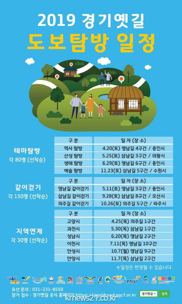 박종달 경기도 문화유산과장은 “3월부터 11월까지 진행되는 탐방행사가 일상의 활력과 경기도 역사문화에 대한 다양한 정보를 제공할 수 있도록 기획했다”면서, “경기 옛길을 통해 즐거움과 배움의 유익함을 함께 얻을 수 있도록 도민의 많은 관심을 부탁드린다.”고 말했다.