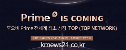 이번 상장하는 후오비 프라임 1기 프로젝트인 ‘TOP 네트워크(TOP, TOP Network)’는 프로젝트 총 발행량의 7.5% 규모인 15억개의 토큰을 거래할 수 있다. 라운드별로 3억, 4억5000만, 7억5000만개의 토큰이 거래 가능하다. 시장 상한가로는 라운드별로 0.00177달러, 0.00213달러, 0.00255달러로 매회 거듭될수록 상한가가 높아질 예정이다.