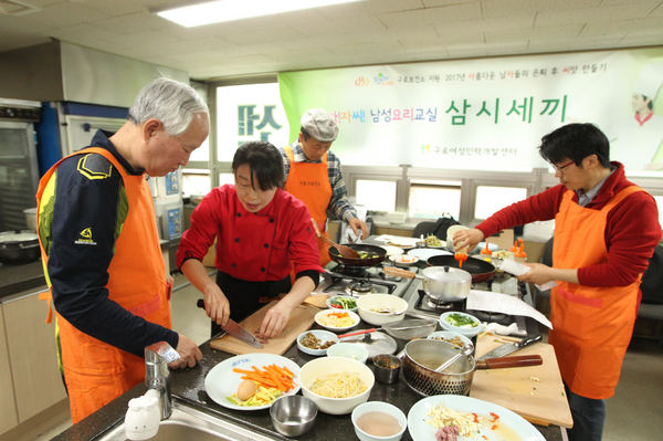 구로구는 평소 요리 관련 교육 기회가 적은 중장년층 남성들을 위한 ‘삼시세끼 요리교실’도 마련한다. 찌개와 반찬류, 양념장 등 활용도 높은 음식을 실습을 통해 배울 수 있다. 요리초보자도 부담 없이 참여할 수 있도록 조리기구 사용법, 재료손질 등 기초적인 내용부터 강의한다. 대사증후군 검사와 맞춤형 영양교육도 실시한다.