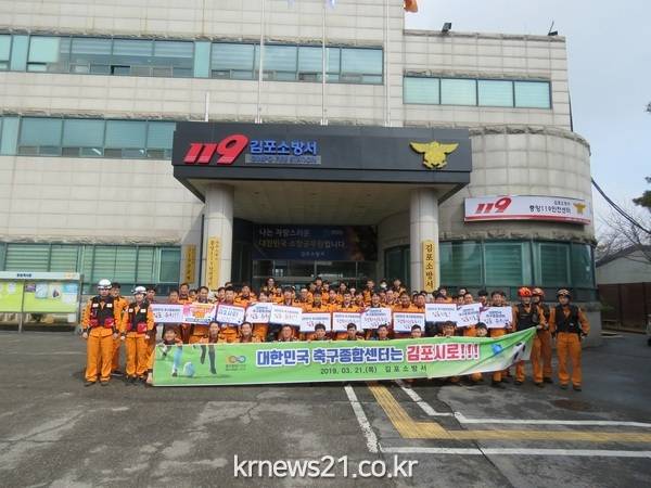 김포소방서(서장 배명호)가 지난 21일 대한민국 축구종합센터 김포시 유치를 위하여 유치기원 챌린지 릴레이에 동참했다.