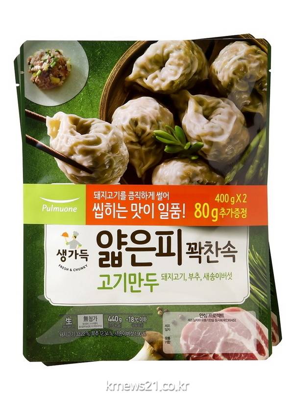 ‘생가득 얇은피꽉찬속 만두’ 2종은 얇은 피를 선호하는 소비자 취향을 고려해 출시했다. 만두피 두께는 0.7mm로 시판 냉동만두 중 가장 얇고, 얇은 피 덕분에 만두소까지 육안으로도 확인할 수 있다. 이 정도의 얇은 피 만두는 유명 손만두 전문점에서나 맛볼 수 있었다.